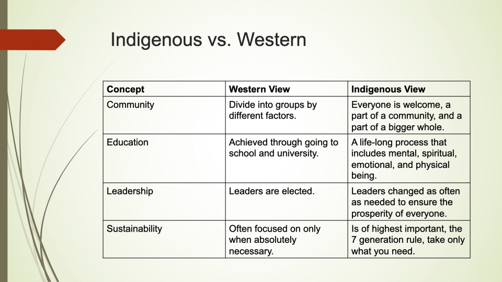 Eliza’s Video – In the video, I included the life before, during and after residential school, a map of residential schools over time, events that had happened from the opening of the first residential school till now and how residential impacted First Nations. I hope more people who don’t know about this part of history will be informed of it and get interested and hopefully would like to do something to help with the issues that the indigenous community are facing.