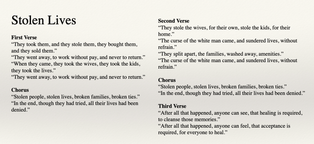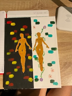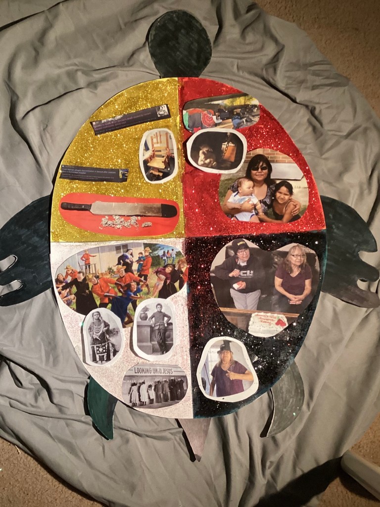 In my research I found numerous answers to my question, and I wanted my results from my research to be incorporated into my art. In my art piece, there are two sides. The left side represents Indigenous people, culture, and society, while the right side represents those of non-Indigenous people.